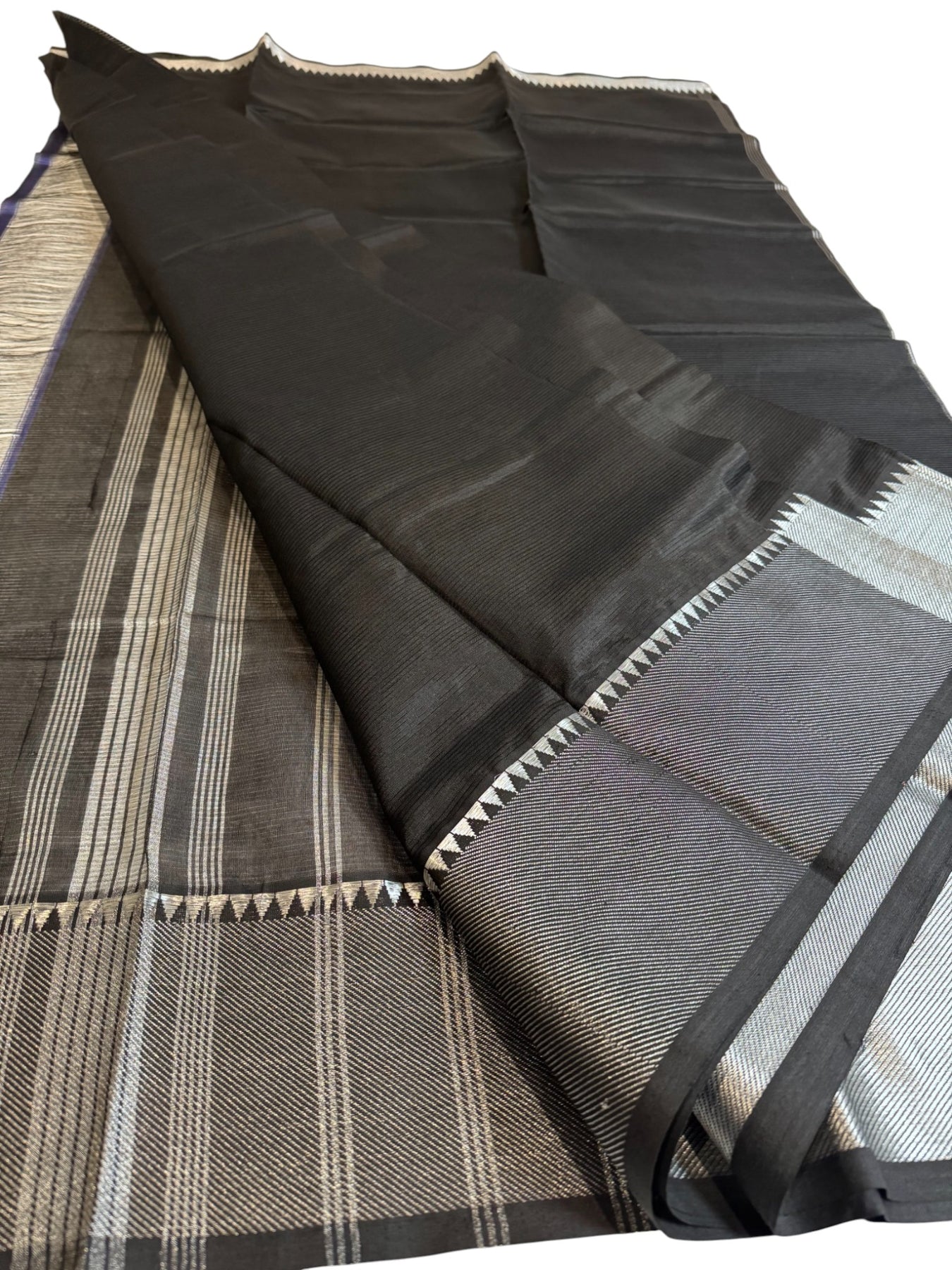 Elegant Black Mangalagiri Silk Cotton Saree with Silver Zari Border