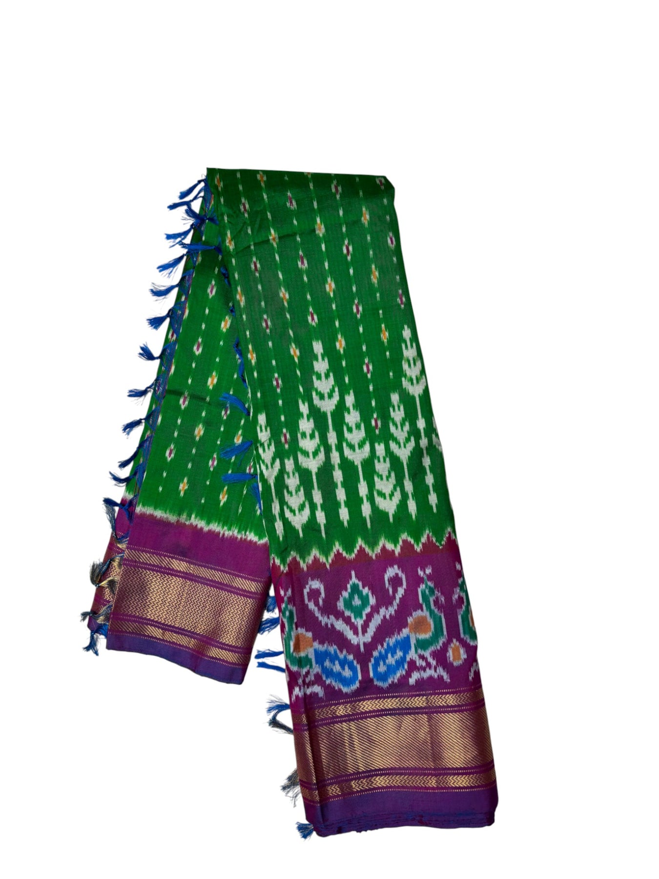 Traditional Ikkat Weaving Saree – Green & Magenta Combination