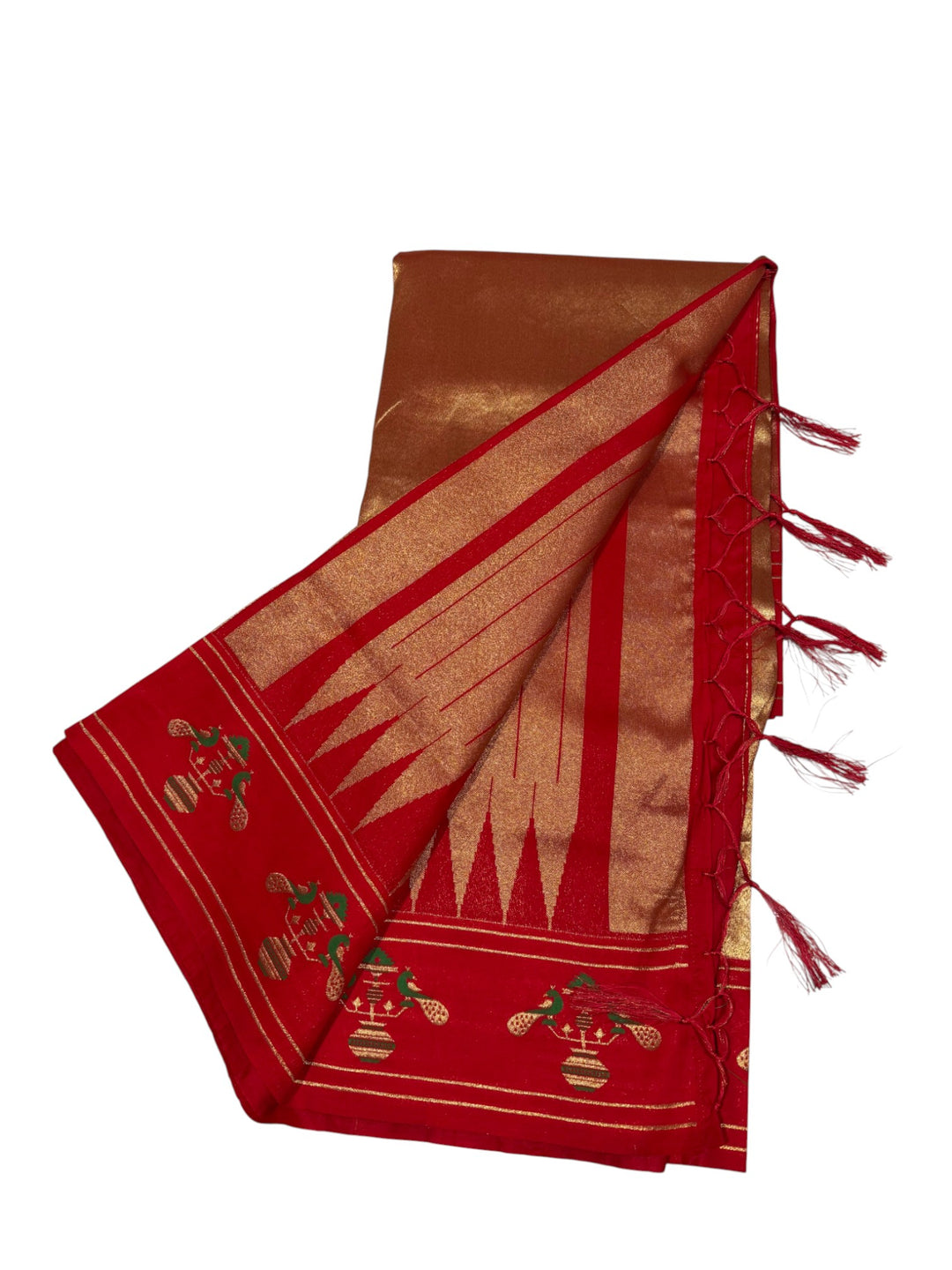 Designer Semi Paithani Saree – Gold Body with Red Border & Blouse