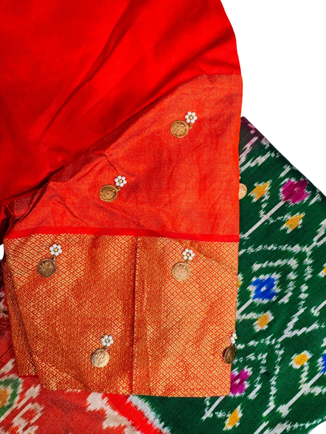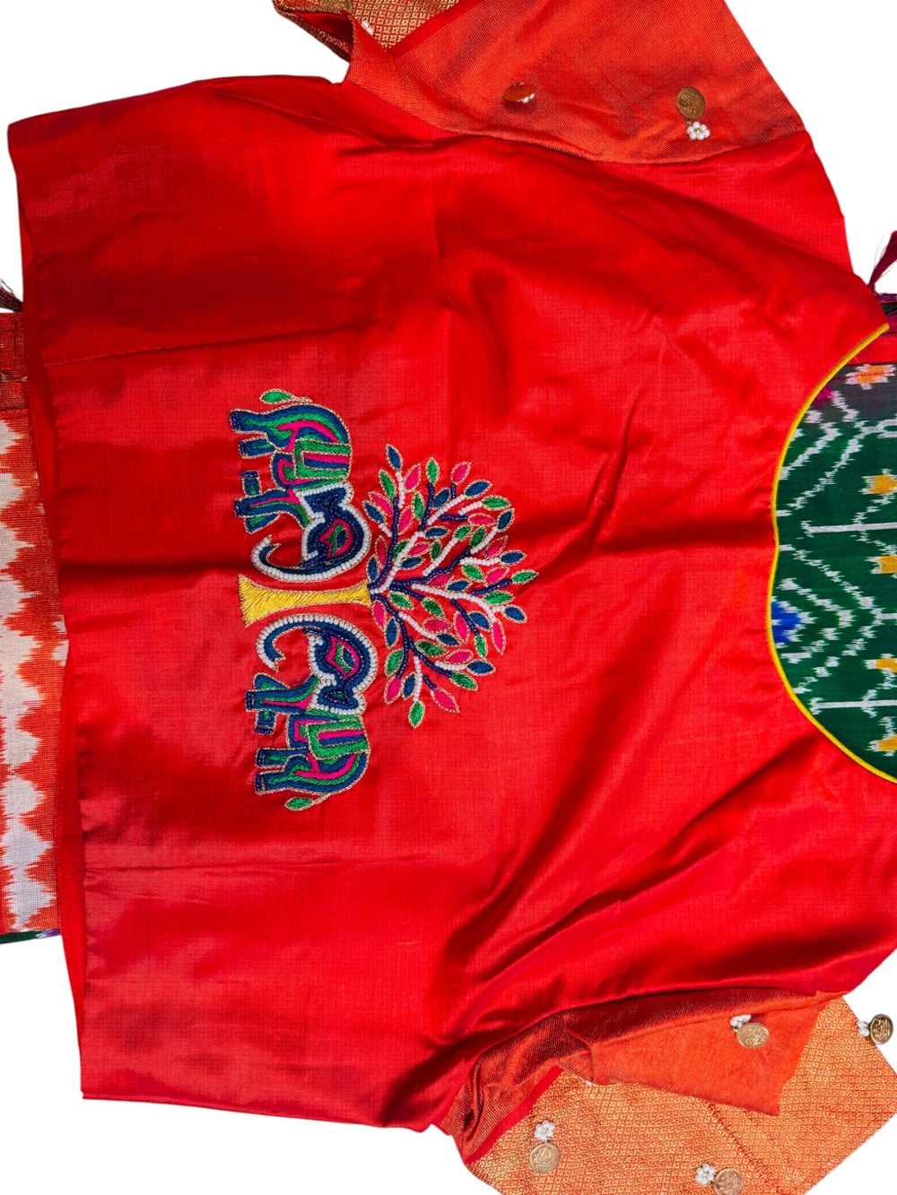 Elegant Ikkat Silk Saree with Contrast Red Stitched Blouse