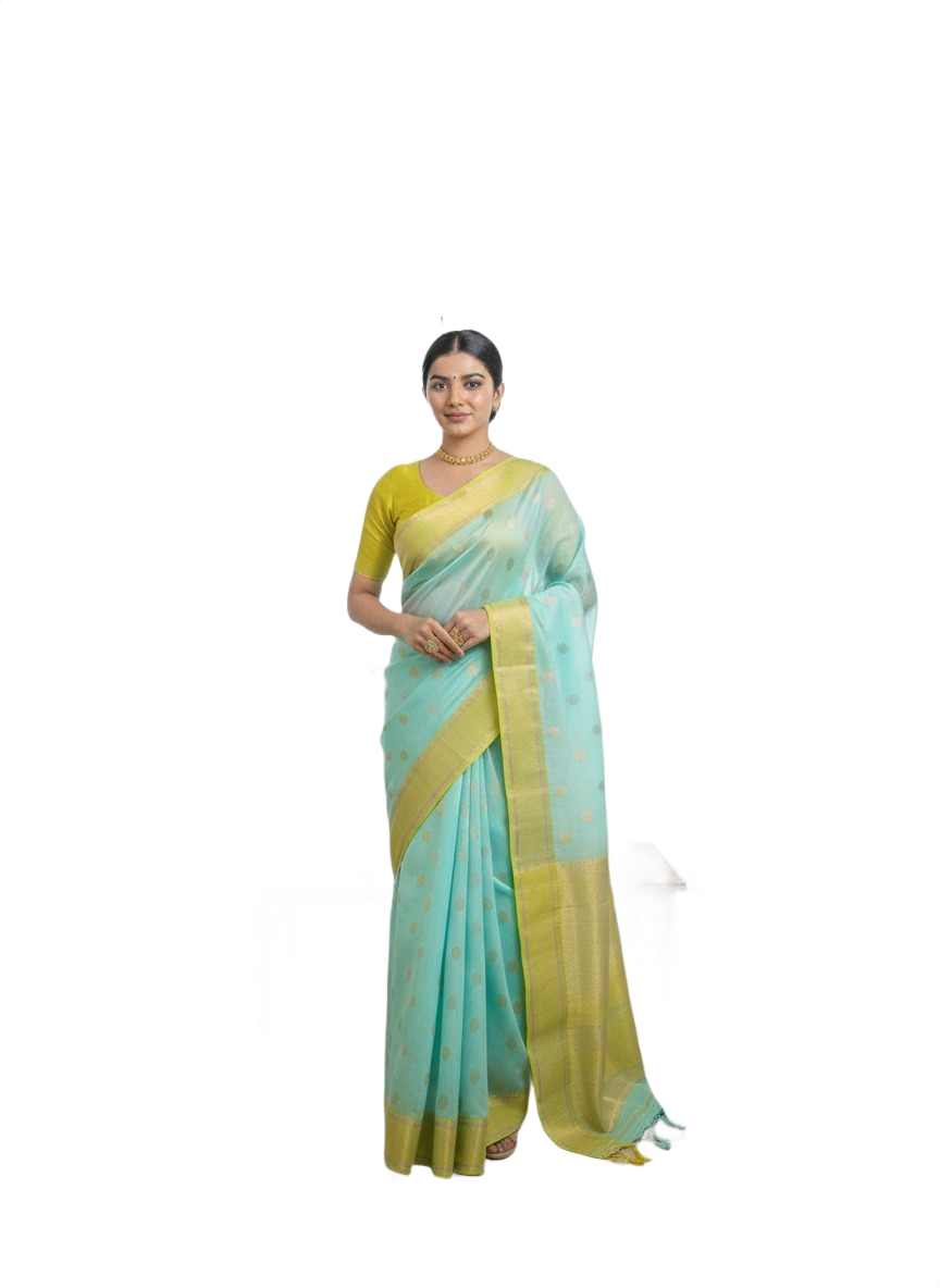 Perfect for festive occasions, daytime functions, haldi ceremonies, temple visits, and elegant casual wear, this saree is designed to keep you light, comfortable, and effortlessly stylish throughout the day.